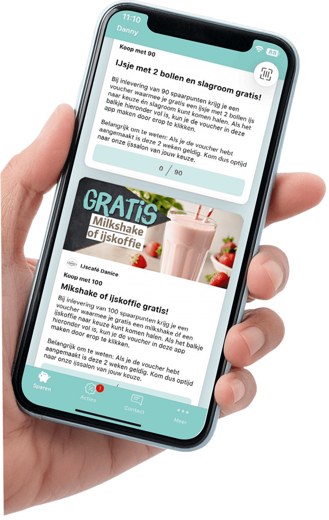 Loyaliteit wordt beloond bij Danice. Met onze handige loyalty app spaar je automatisch bij elke aankoop. Zo trakteer je jezelf (of iemand anders) op korting, gratis ijs of andere verrassingen. Download de app, scan je punten en ontdek hoe snel je spaart voor iets lekkers!